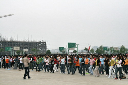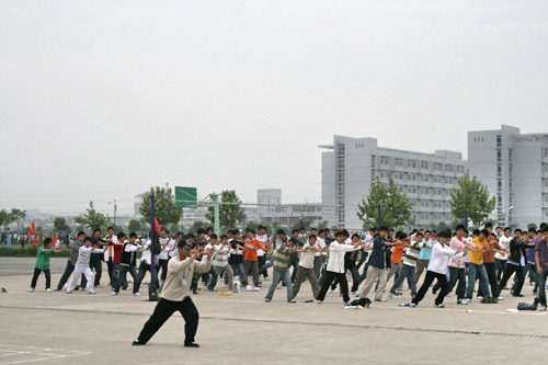 为积极响应《教育部国家体育总局共青团中央关于全面启动全国亿万学生阳光体育运动的通知》在4月29日上午统一时间组织学生集体锻炼1小时的号召,4月28日下午,学院领导组织召开了由学生处、教科处和各系部主要负责人参加的“阳光体育运动”启动工作动员会,研究部署了启动工作具体事项,并明确分工,落实到位。 4月29日上午,学院教科处及时调整了上课时间,学院领导和教师带头走向操场,进行体育锻炼。近7000余名师生共同参与了“阳光体育运动”的启动仪式。启动仪式上,师生们还进行了健美操和武术运动等多项体育运动。