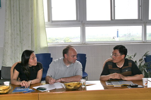 在谈到学院毕业生就业情况时,卡尔·艾伦表示出极大的兴趣。他详细的了解了学院毕业生就业层次与区域情况,同时也针对学院学生的各方面素质提出了一些问题。袁院长在介绍到学院一些优秀毕业生自主创业的典范与突出成绩时,卡尔·艾伦认真的在笔记本上做了记录。在提到关于学院的理工科学生是否有机会学习经管类课程的问题时,孙处长介绍了学院选修课的设置与开课情况,卡尔·艾伦对这种为学生提供拓展性学习的平台的教学方法颇为赞同,并谈到了德国职业技术的教育情况。袁院长于是又针对德国职业教育与中国职业教育的区别做了专业性的比较与论述。