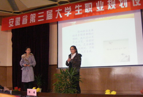 安徽省第三届大学生职业规划大赛半决赛于2008年11月29日正式举行,全省共分为四个赛区,我院五位参赛选手曹璐璐、丁少俊、陈丽萍、王浩、尹可金在经济管理系团总支书记张放的带领下于2008年11月28日赴第一赛区淮南师范学院参加半决赛,取得了较好成绩。