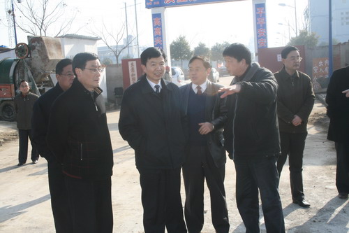 在正在兴建的信息大楼前,张学群深入工地,察看工程进展情况,详细听取张永生院长等人的情况介绍,与施工人员握手并致意。在信息大楼的平面效果图前,看着绿树环抱、水系缠绕的优美校园环境,有人提议,依托龙子湖和大学城几所大学,将来可以发展大学校园旅游业,张学群表示认同。