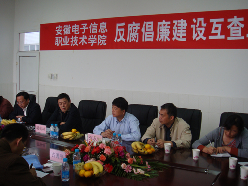 在听取汇报后,考评组副组长、安徽理工大学纪委副书记王振斌同志主持召开了相关部门主要负责人座谈会。监察审计处、组织人事处、院办公室、教科处、行政管理处、后勤集团、财务处、学生处、招生就业指导中心等部门的主要负责同志先后发言,介绍了本部门在反腐倡廉建设中的具体做法和对有关问题的思考。