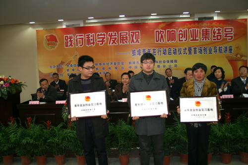“践行科学发展观,吹响创业集结号”活动,旨在更好地为大学生创业搭建平台。为更好服务大学生创业,团市委此次联合相关单位从解决大学生创业项目、创业场所、创业资金、创业运营等四大难题着手,分别采取了相应举措。创业项目选择上,遴选了一批投资小、见效快、市场前景好的项目供大学生选择,并特地邀请了创业指导老师,提供创业培训,指导大学生制订完善创业项目计划书。创业场所上,除原先在全市设立的11个青年就业创业见习基地外,团市委联手电信蚌埠分公司特地在大学城设立了一个蚌埠青年就业创业见习基地,免费为大学生创业提供办公场地和设施。在创业资金扶持上,团市委与蚌埠市永利中小企业担保有限公司签订协议书,联手成立了“玉全大学生创业担保基金”,确定提供100万元一年免息贷款担保。在创业运用服务上,专门成立了“蚌埠市启航大学生创业服务有限公司”,为大学生创业初期免去了工商注册、税务等方面的繁琐,并集中享受相关政策扶持。据悉,目前已有包括我院在内的18个大学生创业团队的创业计划书通过了初评。