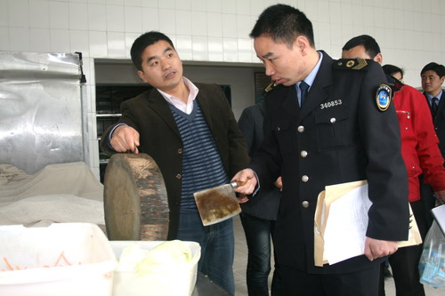 3月31日上午,由市食品卫生安全委员会、市食品药品监督管理局、市卫生监督局组成的A级食堂联合评审组莅临学院,对学院食堂进行评审。袁益强副院长陪同检查。