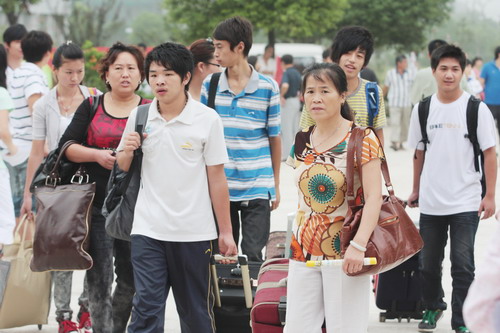 一人来报到,全家齐上阵。孩子来上学,家长前来相送,顺便实地参观一下校园。