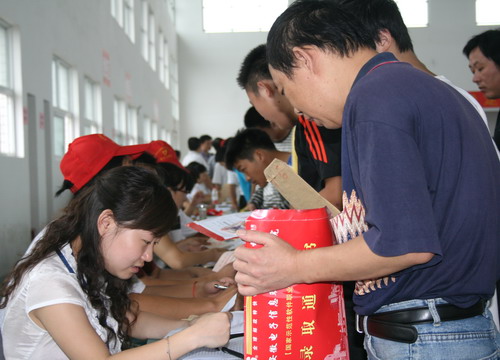 在人群中,也有不少是“单枪匹马”一人来报到的。