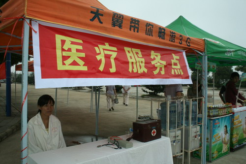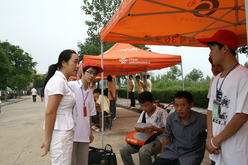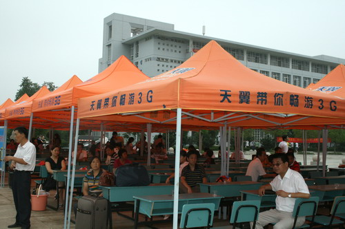 报到场外,各系都设有青年志愿者服务队,热情做新同学的向导。