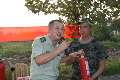 在消防实战演练正式开始之前,邵学民工程师首先为同学们上了一堂精彩的消防安全课。“曾经在某高校发生一起火灾,起因是同学用热水筷在暖瓶里烧开水,瓶烧干后引起大火,结果四个人先后从六楼跳下,很不幸都摔死了。”“当饮水机里只剩下少量的水时,一定别忘了及时拔掉电源,长时间烧的话,很容易将水烧干,盛纯净水的桶是易燃材料,容易引发火灾。”“在炒菜时如果油锅起火不要用水浇,这样起不到灭火作用,相反,如果燃烧的油溅到地上或其它物品上,会引发更大的火灾。干粉灭火器适用于任何原因引起的火灾灭火。”“在宿舍里点蚊香或卧床抽烟,一定注意不要把蚊帐或被子点着了,烟头一定要掐灭后再扔。”