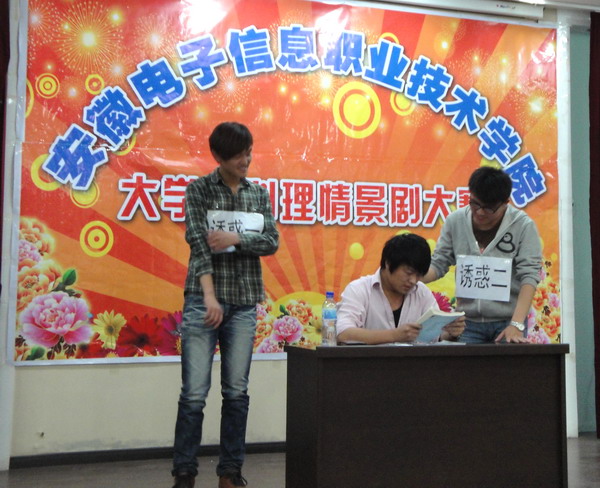 在5月26日的总结和颁奖仪式上,老师和同学们共同观摩了由电信078班表演的心理情景剧《走出沼泽》和机电103班的《转身拥抱阳光》。情景剧取材的真实性和演员的精彩表演获得了现场观众的强烈共鸣,赢得了大家的热烈掌声和一致好评,同学们的心灵得到了强烈的震撼。
