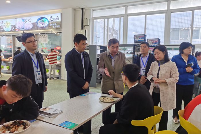 在餐桌旁,王国武随机走访了正在就餐的学生,并与之亲切交谈,仔细询问了学生对学校近期实施的外卖禁止进宿舍、食堂禁塑、超市禁售烟酒和食品安全的态度,关心了解学生对饭菜质量、价格和服务等方面的建议意见。随访同学表示,支持学校推行的相关措施,有利于让学生走出寝室,改变了懒散的习惯,没有了外卖包装袋产生的垃圾污染,寝室、教室变得干净整洁,食堂伙食质量有了提升,饭菜价格低于市场外价格。在听取了学生反馈后,王国武鼓励学生多走出寝室,走进运动场和教室,养成良好的生活习惯,锻炼健康的体魄;要求相关部门认真做好食品安全教育,不断提升服务质量,在错峰就餐条件下,保障饭菜品种供应,做好饭菜保温,让每一位学生吃上可口的饭菜。走访后,王国武和相关部门负责同志在一楼学生食堂就餐,亲身体验了饭菜质量,实地查看了东门外卖点秩序、学生公寓禁止外卖等情况。