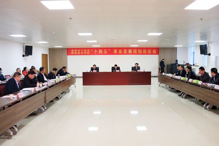 本网讯 为切实发挥好事业发展规划引领学院高质量发展的作用,科学编制学院“十四五”事业发展规划。10月29日,学院召开“十四五”事业发展规划编制汇报会暨规划论证会。会议邀请了安徽省经济和信息化厅党组副书记、副厅长杨明、安徽省职业与成人教育学会会长李兴旺教授等来自政府、兄弟院校和合作企业的17名专家学者对学院“十四五”事业发展规划进行论证。学院党政领导石象斌、王国武、韩光辉、马莉莉、姚卿佐、辛颖、陈再文及相关部门负责人参加会议。党委书记石象斌主持会议并致欢迎辞。