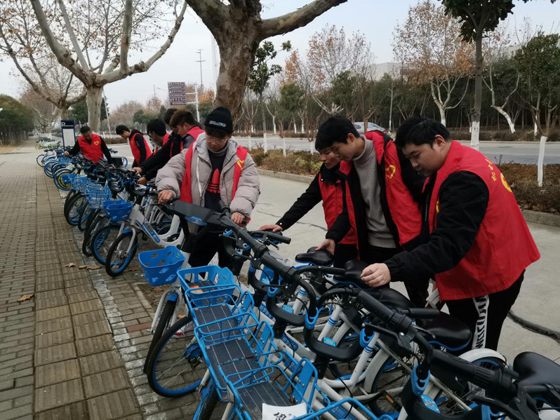 本网讯 随着绿色、低碳、环保概念的深入人心,共享单车成了许多人出门的不二选择。但总是有一些人在骑行完毕后将共享单车随手弃置,为响应号召,清理用户使用后乱停乱放的共享单车,减轻堵塞占道的现象。近日,机电工程系青年志愿者协会的20余名志愿者,以大学城园区为中心进行共享单车整理活动。