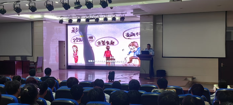 报告会上,陈兴武主任结合真实案例,深入剖析了“刷单返利”、“冒充客服”、“网络交友诱导投资赌博”等常见诈骗手法的特点与套路,用生动形象的语言揭示了诈骗分子的作案手段,并传授了“不轻信、不透露、不转账”的防骗原则和及时报警的处置方法。同时围绕安全的重要性,从交通安全、校园安全、网络安全等多个方面进行了详细讲解,为同学们普及了各类安全知识与防范措施。随后,王之高警官结合宣传教育片中的案例重点介绍了邪教的危害以及反邪教的重要性,通过“诈骗话术拆解+真实案例还原”的方式,让新生现场辨别骗局。现场互动积极,气氛热烈。同学们纷纷表示,讲座内容贴近生活、警示性强,极大地增强了自身防范的能力。