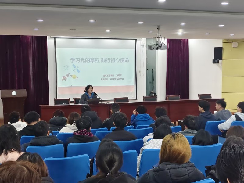 本网讯 为引导青年学子深入学习党的章程,强化党性修养,筑牢信仰之基,近日,机电工程学院学生党支部书记方茂君老师开展“学习党的章程 践行初心使命”专题讲座。全体业余党校学员齐聚一堂,接受深刻的思想淬炼与精神洗礼。