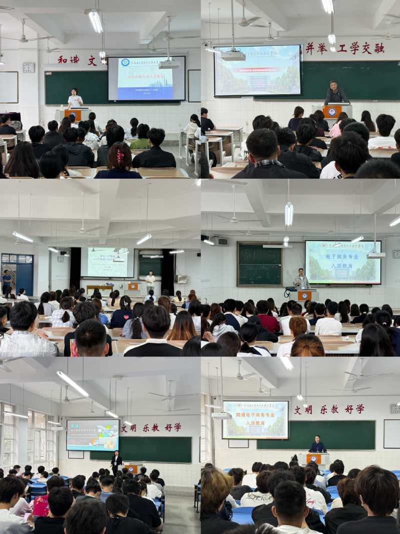 本网讯 金秋送爽,丹桂飘香。为引导2025级新生“开好头、起好步”,全面了解专业内涵、明确学习方向、科学规划大学生涯,9月21日下午,经济管理学院在1001A、2002A等智慧教室为全体2025级新生开展专业教育。电子商务专业带头人王浩、大数据与会计专业带头人吴冬霞、商务数据分析与应用专业带头人杨明等6名专业带头人走入新生班级,开展专业教育。
