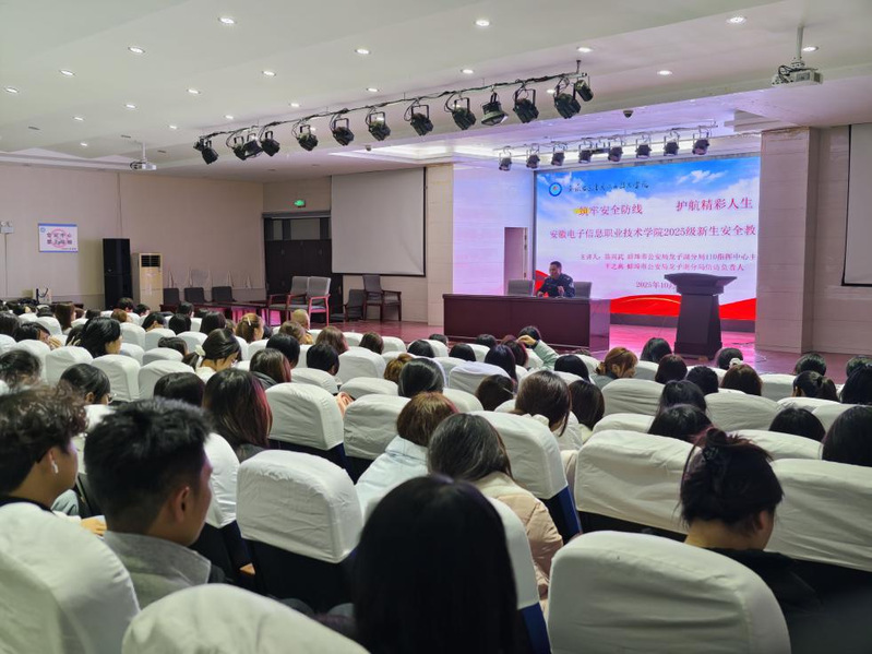 本网讯为切实提升新生安全防范意识,筑牢校园安全防线,10月20-10月21日晚,经济管理学院协同校园安全管理处、学生处举办2025级新生安全教育讲座。本次讲座邀请蚌埠市公安局龙子湖分局110指挥中心主任陈兴武、警官王之高担任主讲嘉宾。经济管理学院项西国主持讲座,全体新生辅导员及2025级新生参加。