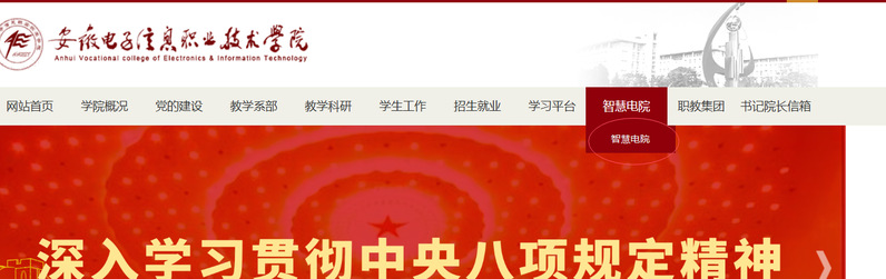 1.登录学院网站首页,(链接:www.ahdy.edu.cn或关注学院公众号),在网页右上方'智慧电院'登陆端口输入本人学号和初始密码(身份证后六位),点击“登录”。