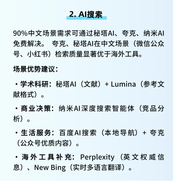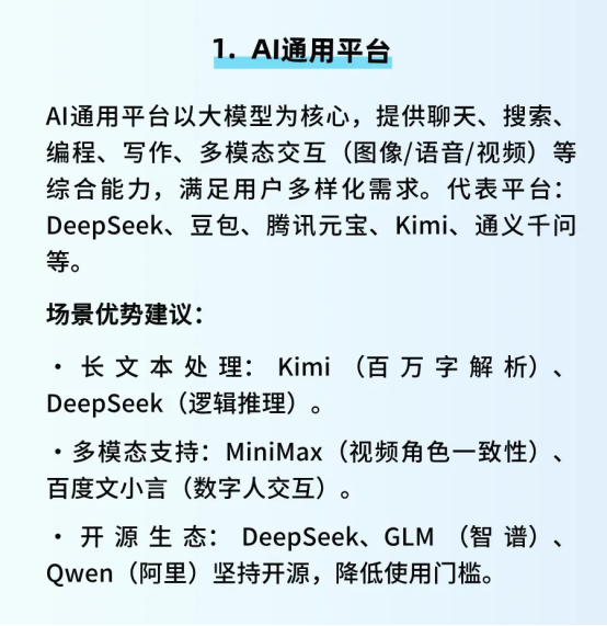 上篇(面向大众人群使用场景):AI通用平台、AI搜索、AI写作、AI视频、AI绘图、AI音乐、AI办公、AI PPT、AI数字人;