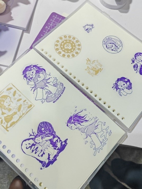 展会期间,工作室同步设置双墩文化体验式印章打卡活动,将双墩遗址代表性文化符号融入印章设计,观众可通过现场盖章互动,直观感受蚌埠史前文化的独特魅力,充分展现了“蚌小贝”品牌的创新活力与文化内涵。此次文创教学成果的成功落地与市场亮相,不仅是我院在历史文化传承教育领域的创新实践,更标志着学校产教融合工作向纵深推进,为培养高技能人才提供了坚实支撑。 (图/文:李苗苗 审核:夏克付)