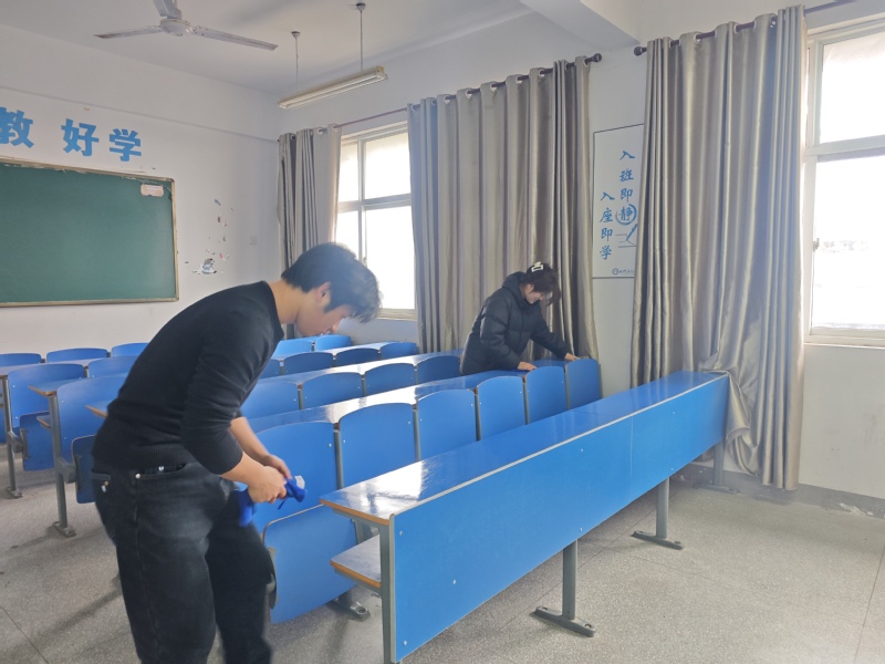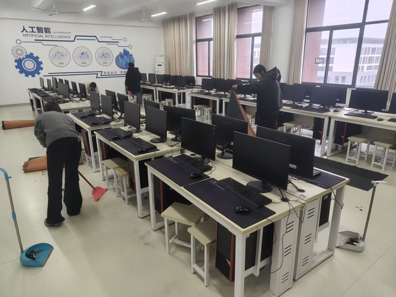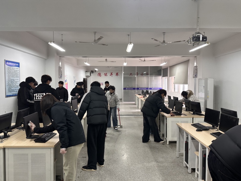 此次清洁活动范围覆盖各班级责任教室及学院所有教学机房,学院对清扫工作制定了细致且严格的标准。教室清扫中,同学们分工协作,对桌面、地面、黑板、讲台、门窗等各个区域进行全方位清洁,做到桌面无杂物污渍、地面无垃圾死角、墙面干净整洁,同时将桌椅摆放得整齐规范;机房清洁里,大家在机房管理员老师的现场指导下,仔细为显示器、键盘、主机等设备擦拭除尘,认真整理电脑线路与插排,确保线路摆放有序、设备规范整齐,对机房地面进行彻底的清扫与拖洗,不放过任何一个卫生死角。