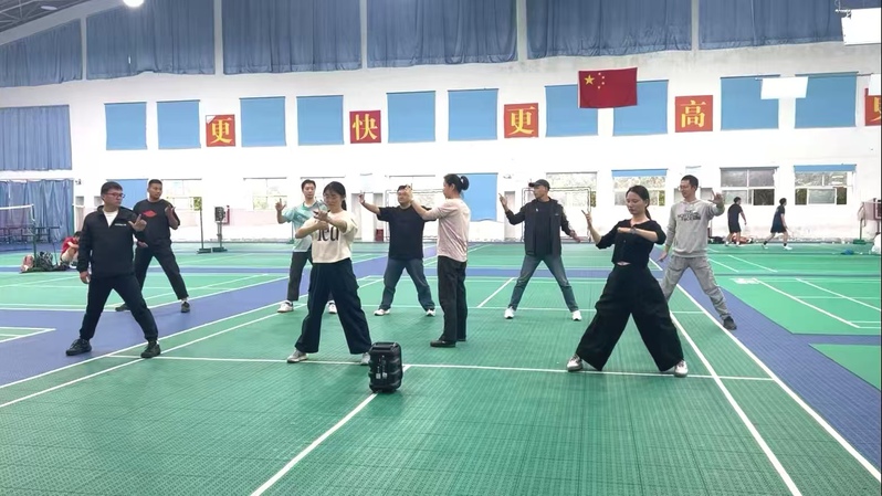 自第二届安徽省高等院校健身气功比赛竞赛筹备工作启动以来,体育俱乐部管理中心高度重视,组建了以主教练孙鸿麟老师为核心的参赛教师团队。为确保备赛效果,团队坚持每日下午开展集中训练,从健身气功的动作规范、呼吸配合、节奏把控到精神风貌展现,进行全方位、精细化打磨,力求在赛事中展现学院教师的专业素养与良好形象。