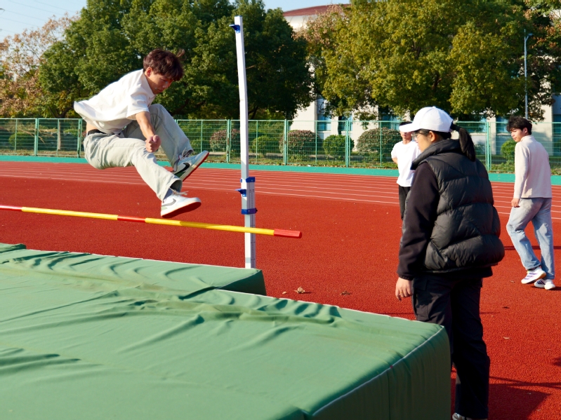 本次活动紧密结合本届校运动会报名情况,针对跳高、短跑、中长跑、跳远、投掷五大田径项目,制定专项训练计划。每周三下午14:30-16:00,学生在西田径场各指定区域开展训练:跳高区聚焦助跑节奏与过杆动作优化,短跑区强化起跑反应与冲刺能力,中长跑区训练耐力分配与战术跑位,跳远区提升助跑衔接与落地稳定性,投掷区则注重发力顺序与器械轨迹控制。通过分项指导,确保技术动作规范性与训练针对性。