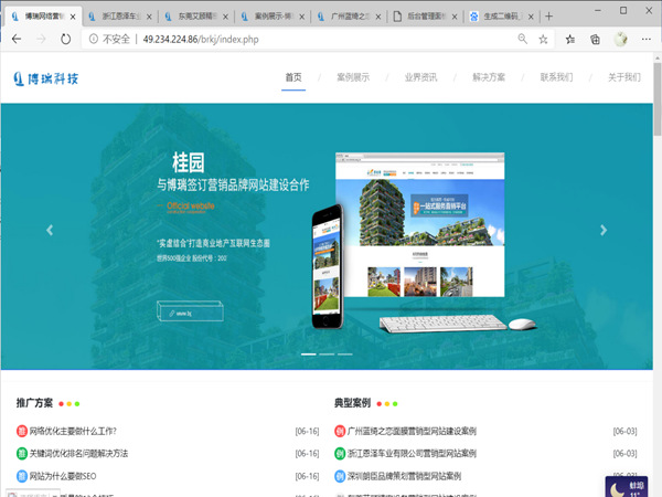 【简介】:作品为博瑞网络营销科技有限公司官网,用于品牌宣传、业务扩展与用户沟通。页面采用响应式设计,内容加载添加动画特效,配色明快,布局简洁,具有良好的浏览体验。开发重点侧重于后台管理部分,后台设计上借鉴了x-admin静态页面模板布局,所有业务逻辑均为自己实现,具有丰富实用的功能,包括内容编辑发布、账户权限管理、发送邮件、行为日志等。采用Ajax方式与服务器交换数据,无需重新加载整个页面,体验效果更佳;数据库操作方面使用Medoo(PDO) 防止SQL注入,确保数据库更加安全;添加文章时可智能自动提取关键词和描述。另外还可展示用户所在地天气、页面语言选择等。