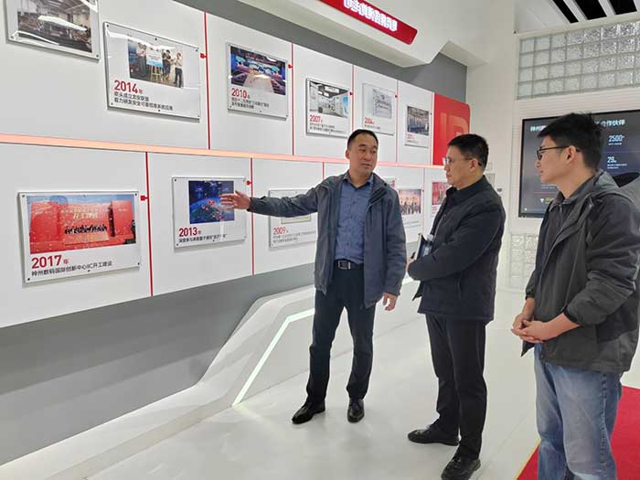 在安徽省东超科技有限公司,朱正月一行在企业负责人的介绍下,深入了解了企业的可交互空中成像技术和负折射平板透镜等核心产品,观摩了可交互空中成像技术在公共服务自助终端、医疗卫生、车载显示、广告媒体、智慧家居、展览展示等场景的应用,体验了多款终端产品的使用,真正感受到“科幻”变为“现实”的科技创新之美。校企双方就后续加强校企合作,共建虚拟仿真平台等进行了广泛的交流。