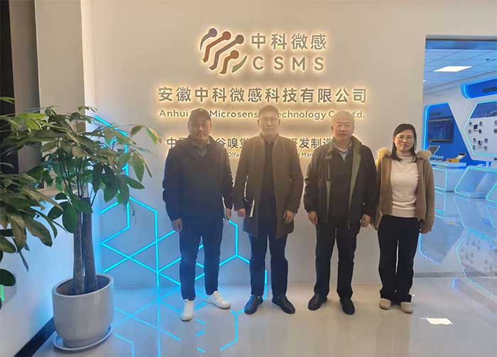 在走访调研过程中,朱正月一行先后参观了企业芯片级、模组级及终端级产品展示区,实地观摩了相关产品在环保监测、消费电子、新能源汽车、军事安全、医疗健康、智能家居等多领域的应用场景。企业创始人沈文峰对朱正月一行的到访表示热烈欢迎,并系统介绍了公司聚焦“人工智能+嗅觉传感器”技术创新突破,构建“材料—工艺—算法—系统—应用”全链条技术闭环的发展布局。公司总经理孙克则深入阐述了人工智能嗅觉感知相关课程及支撑体系对高校专业课程建设的深度赋能价值,并针对共建“研发制造基地+产教联合体+现场工程师培养+实习就业基地”的人工智能+嗅觉感知产业生态,提出了具体合作方案。座谈交流中,校企双方围绕校企合作基地建设、专业课程优化、人才联合培养、学生实习就业等核心议题充分沟通,初步达成合作共识。