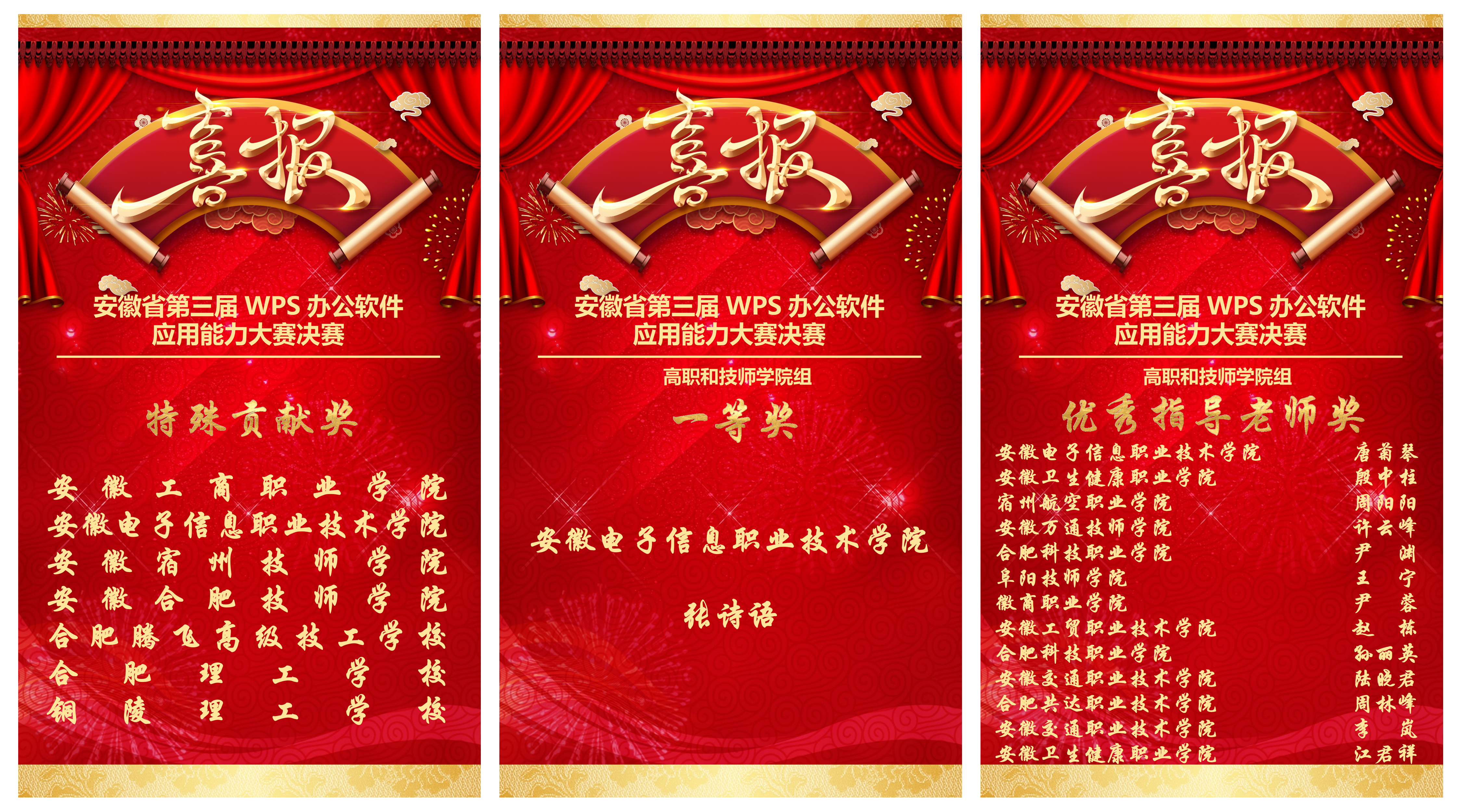 本网讯 近日,由安徽省职业与成人教育协会、安徽省职业技术培训协会和珠海金山办公软件有限公司联合主办,安徽银领技能人才研发中心与安徽水利水电职业技术学院共同承办的安徽省第三届WPS办公软件应用能力大赛决赛,在安徽水利水电职业技术学院成功举办。全省100余所院校的师生同台竞争,经过激烈角逐,共有480位选手晋级决赛。最终我院信息工程学院计算机应用技术专业学生张诗语斩获一等奖、王耀威和曹硕荣获优秀奖,唐菊琴被授予“优秀指导教师”,学院荣获“突出贡献奖”。