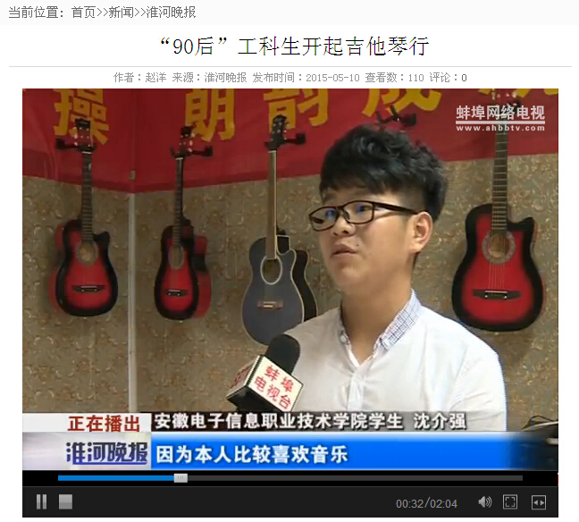 今年19岁的沈介强,是我院汽车电子专业的一名大一学生。他想锻炼一下自己的能力,因为喜欢音乐,就想着开一家琴行。
